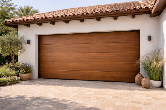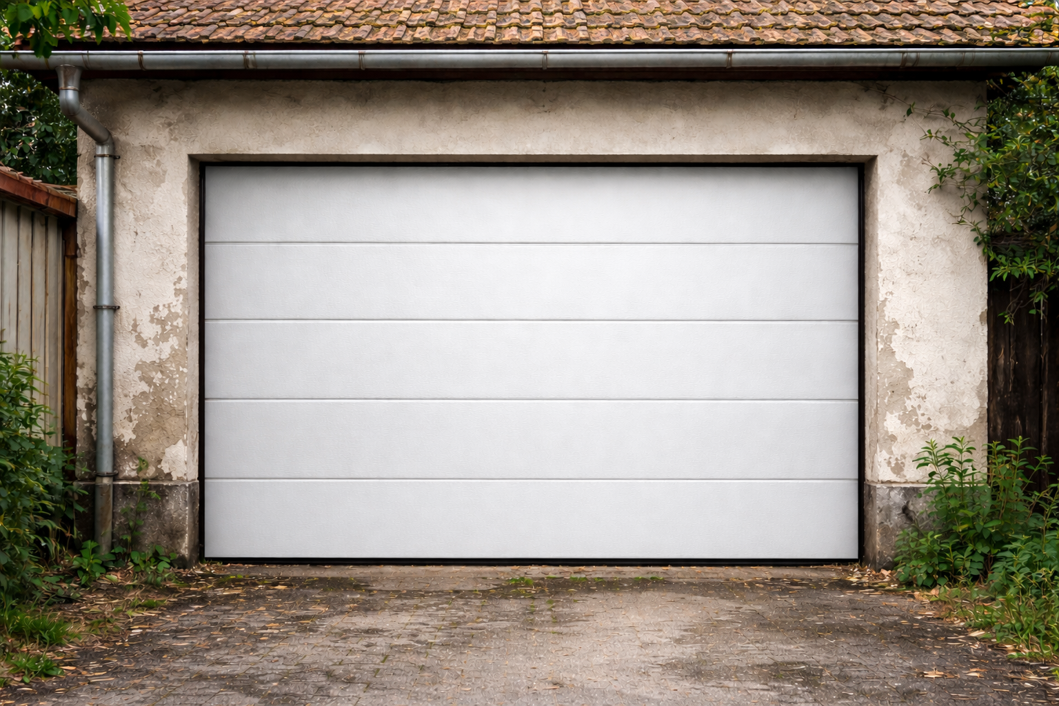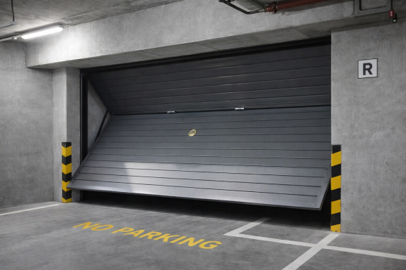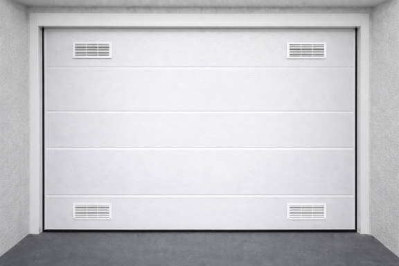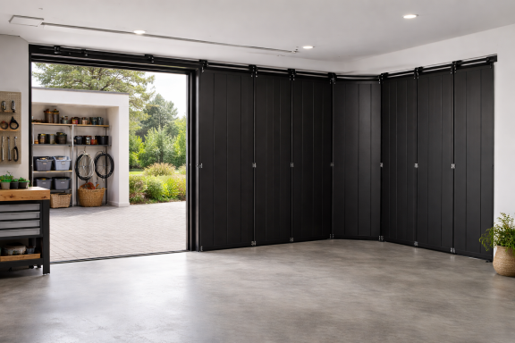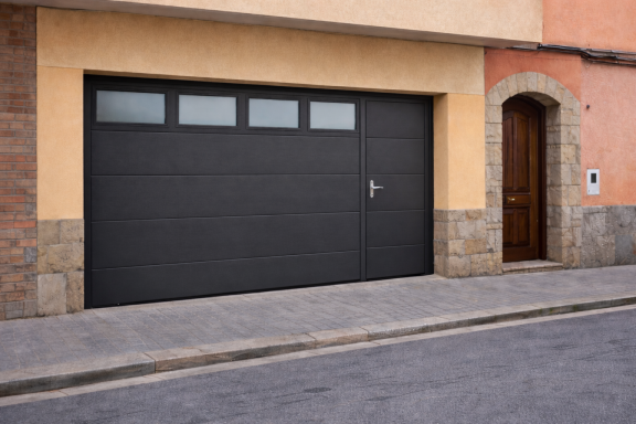 Porta de dues fulles que pleguen cap amunt fent un moviment basculant, molt habitual en garatges privats pel seu funcionament senzill.