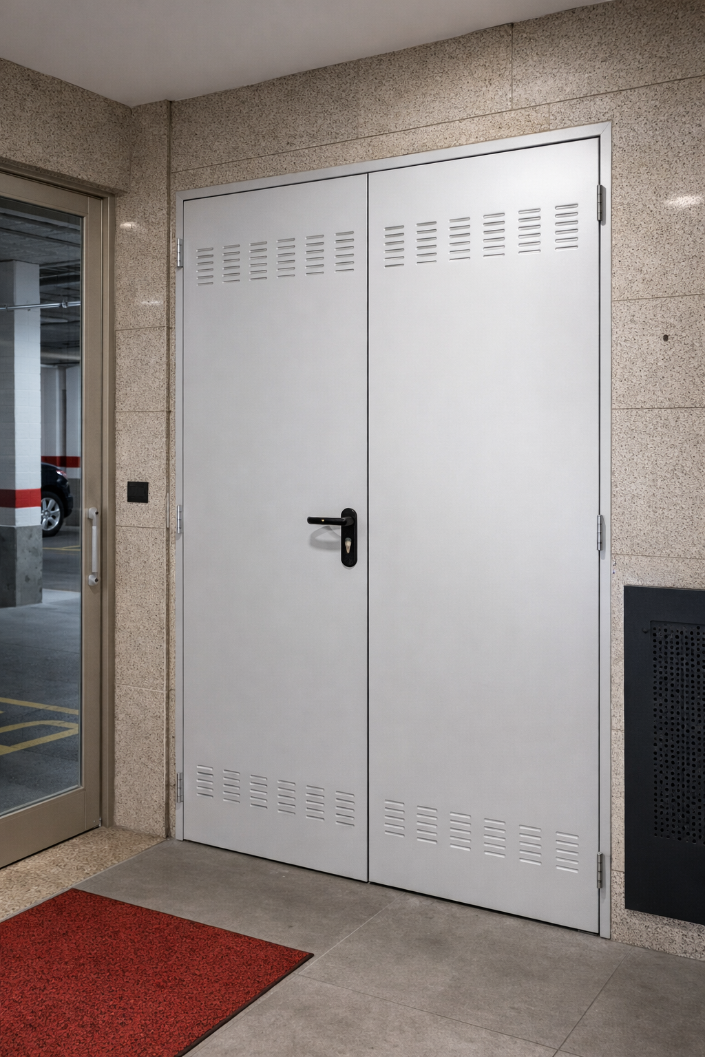 Porta metàl·lica pensada per a ús quotidià i funcional, ideal per a trasters, sales tècniques, zones comunes i espais interiors de garatges.