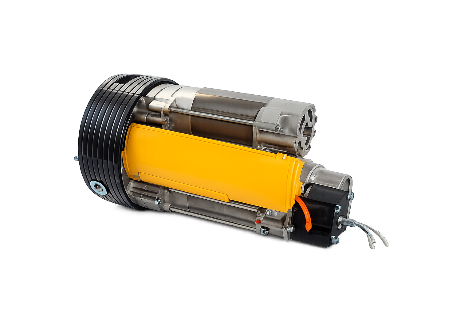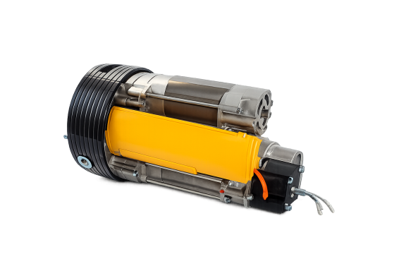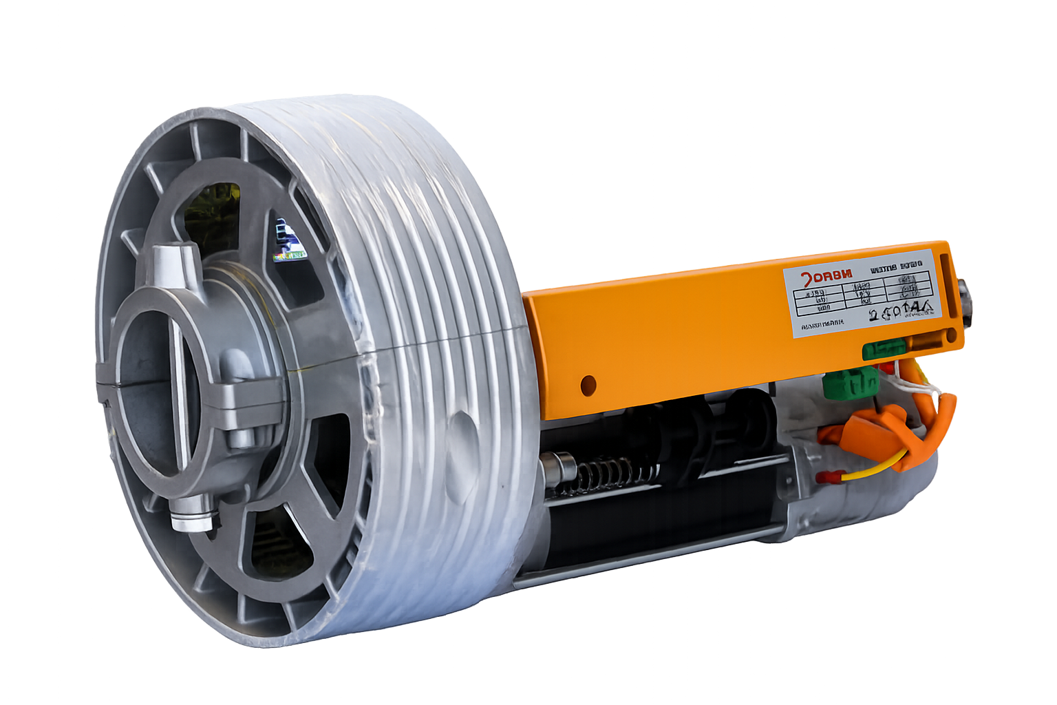 És un motor que va muntat directament a l’eix de la porta.
