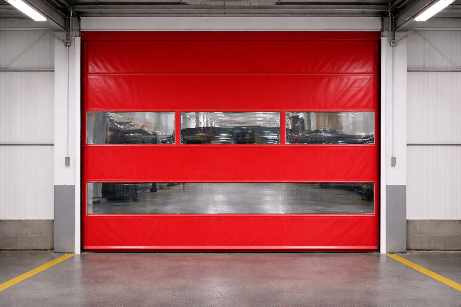 Tancament lleuger de lona o PVC que s’obre i tanca a gran velocitat, pensat per a zones de pas intens on cal mantenir temperatura, higiene o separar ambients.