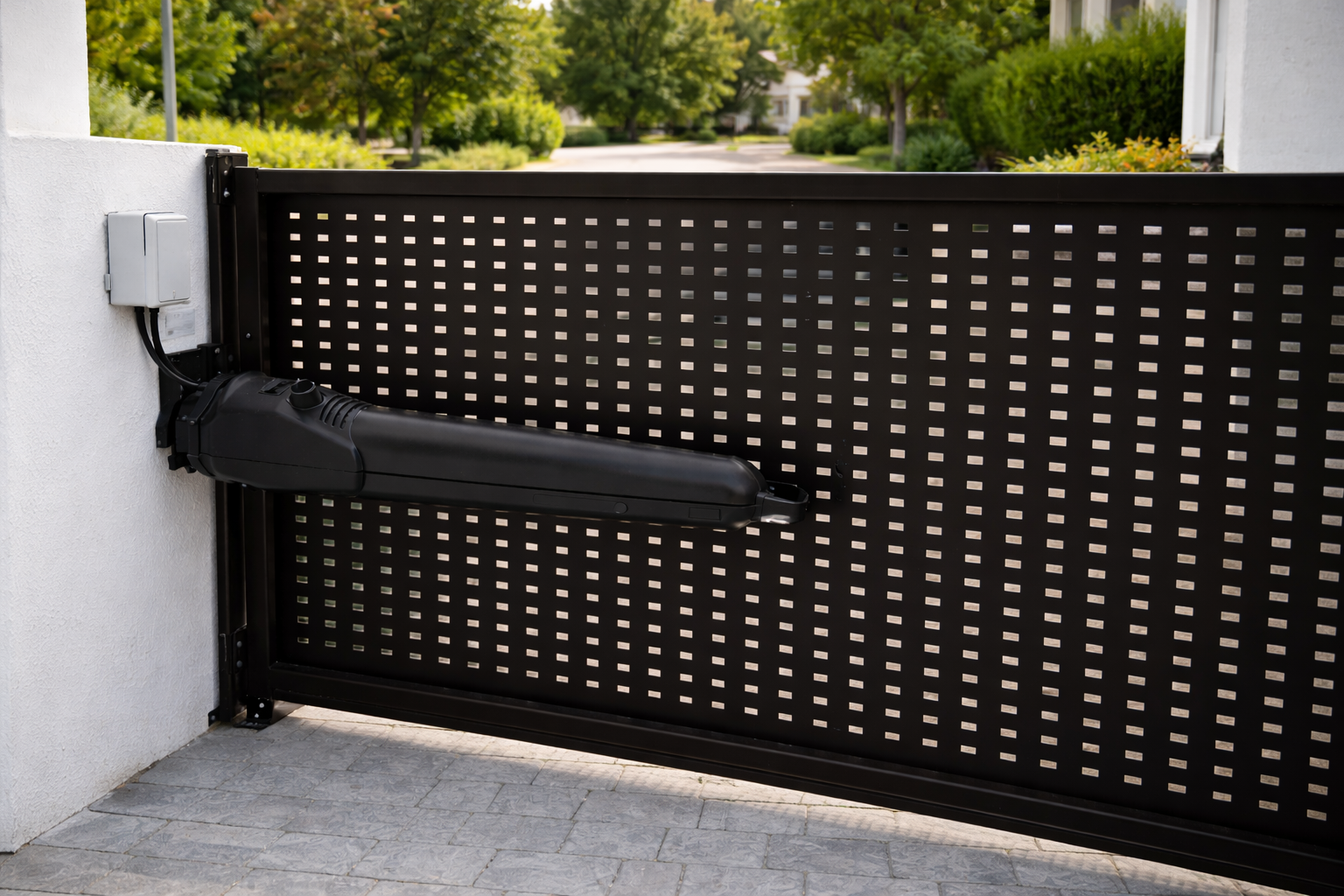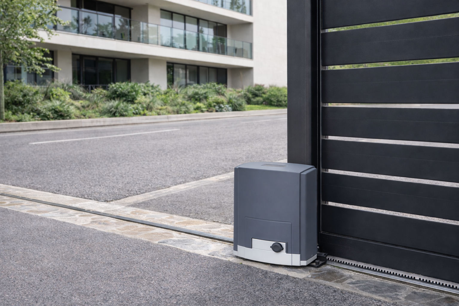 És un motor col·locat a un costat de la porta que fa moure la porta lateralment mitjançant una cremallera fixada a la fulla.